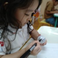 9月の最後のアートは、本物の魚を見ながら墨絵で魚を描いてみました。 どんな魚が好きですか? まず、初めに魚の目を描いてから、体を描きました。大きな目で、迫力がありますね! 魚のアウトラインを入れたら、模様を …