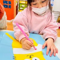 Today’s project was making winter cat pictures for decorating the classroom. Everyone cut and pasted scarfs to …