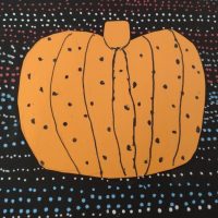 今日のアートはハロウィンにちなんだ楽しい作品をつくります。みなさんは世界的に有名なYayoi Kusamaをご存知ですか?彼女の作品はドット柄のアートが特徴的で有名ですね。 さて、まずはカボチャをつくりましょう! 切った …