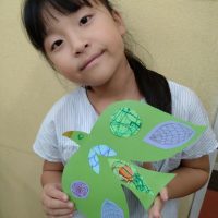 今日のアートは鳥の工作です。 画用紙のリサイクルの大切さも踏まえて要らない 紙を残さないように工夫して模様をかきます。 クラスの中では what shape do you like? I like rectangle a …
