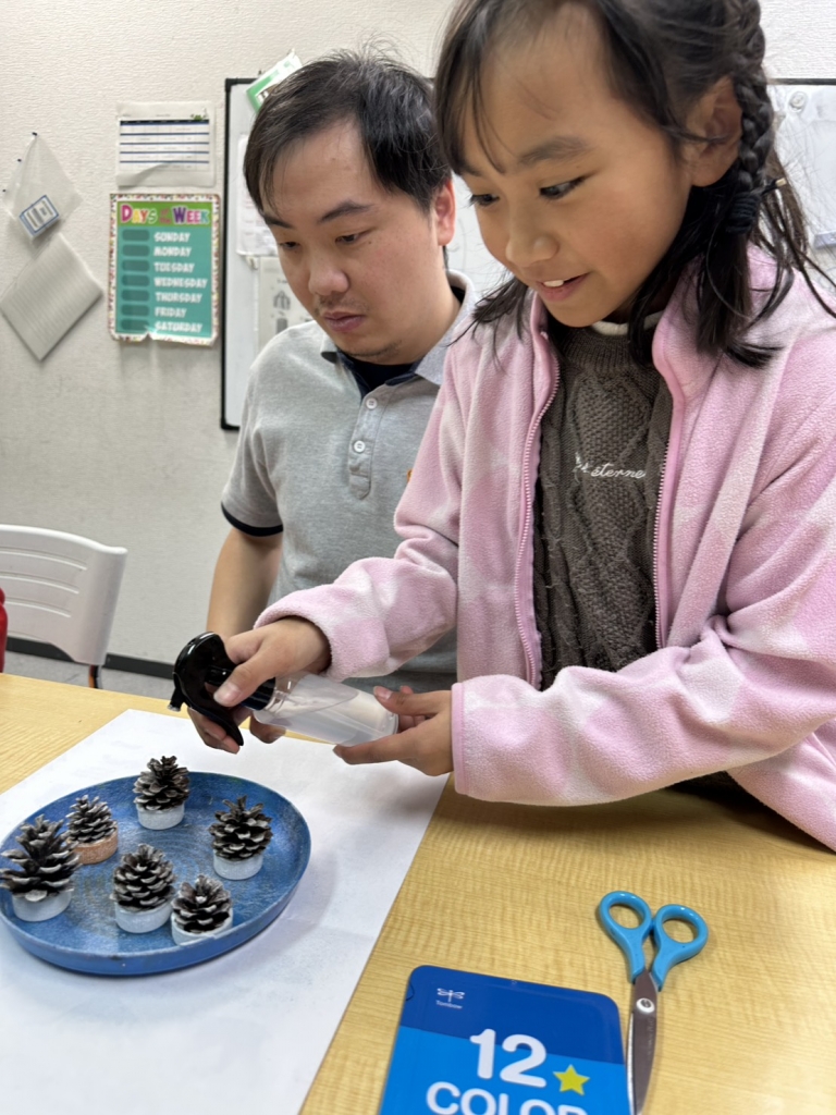We explored how the cold turned the pinecones into a different color and made a few pinecones into a similar color for today’s experiment.