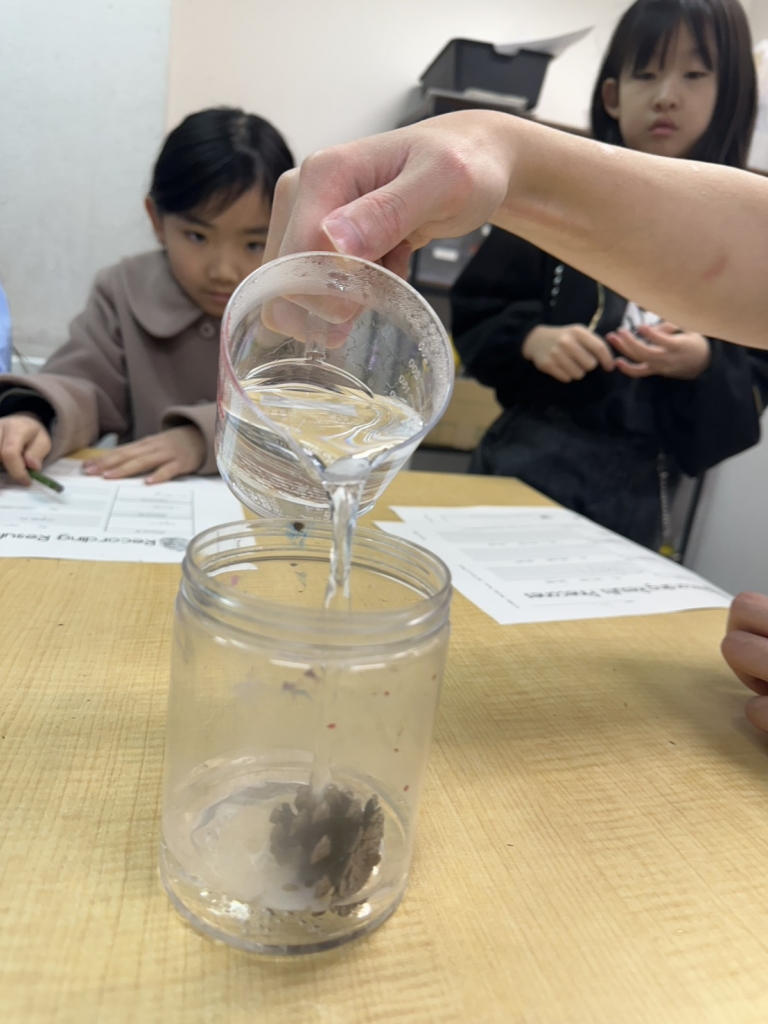 We did a little experiment on the pine cone showing how it behaved on different water temperatures.
