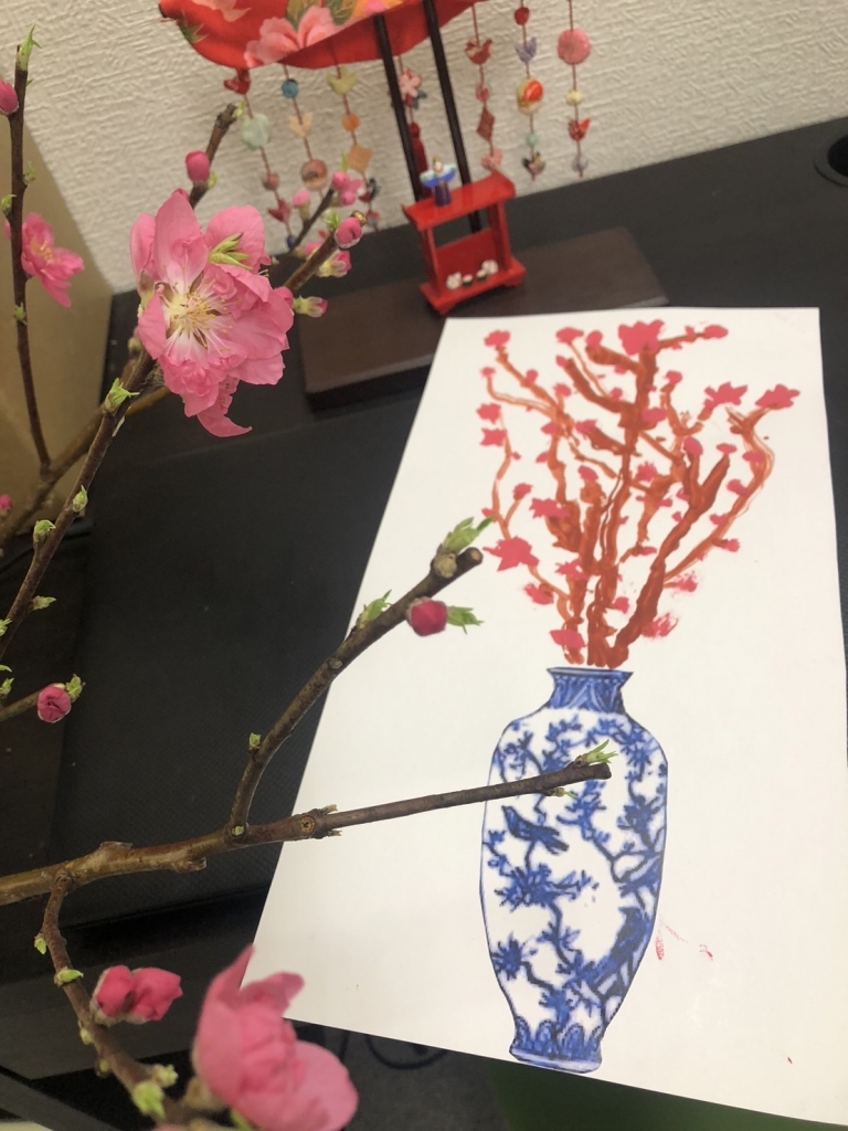今日は桃の花を題材に春らしい作品を仕上げました。