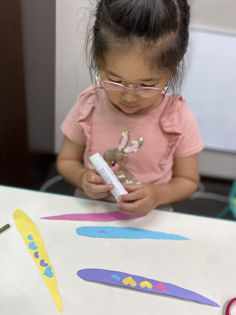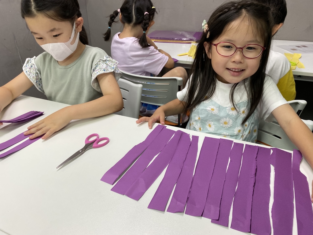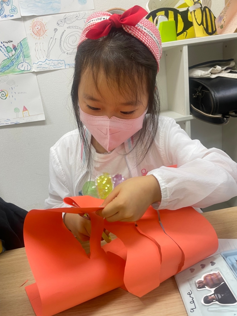 「I Love Weaving」では、2色の色画用紙を使って交互に編んでいきます。たった2色でも明るい色を選ぶか、シックな色を選ぶかで個性がでてきます。