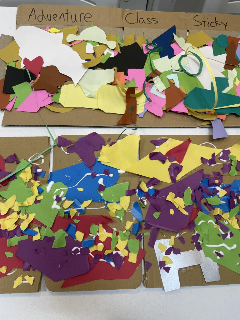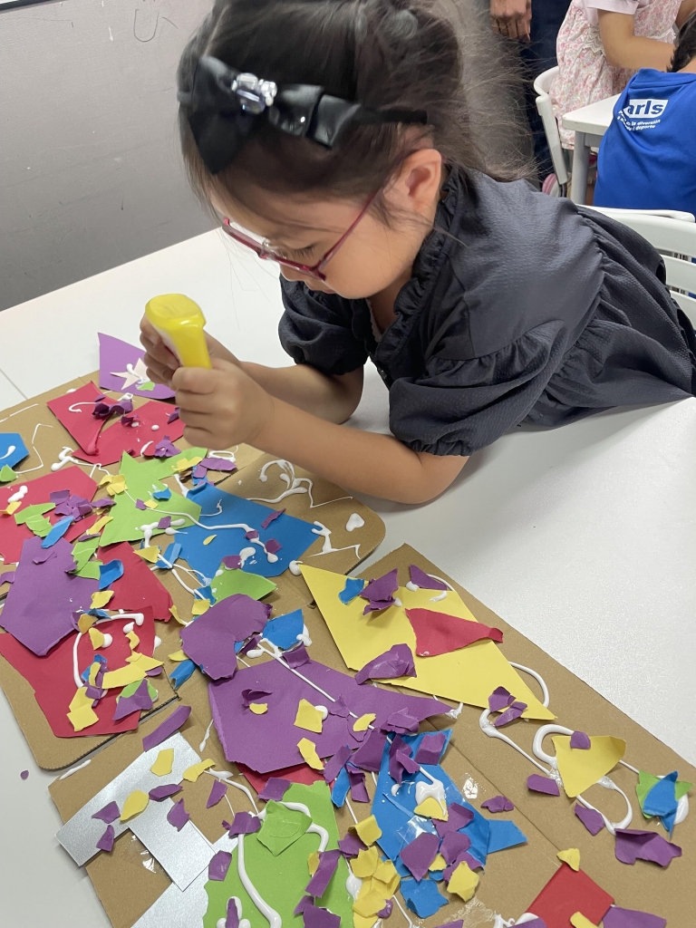 買った画用紙を、glueやtapeなどを使いながら自由に貼ってみました。