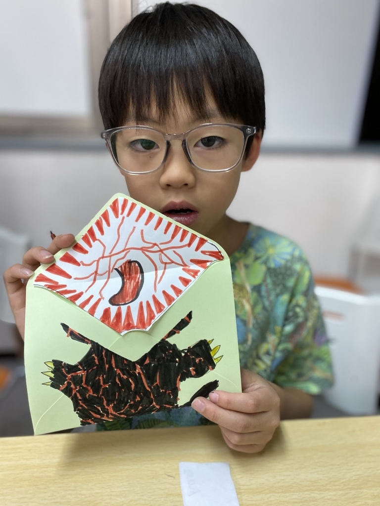 誰かに手紙を送ったり、誰かから手紙をもらったことはありますか?封筒を開ける瞬間は、ドキドキしますよね。今日のアートは、封筒を動物に見立てて絵を描きました。