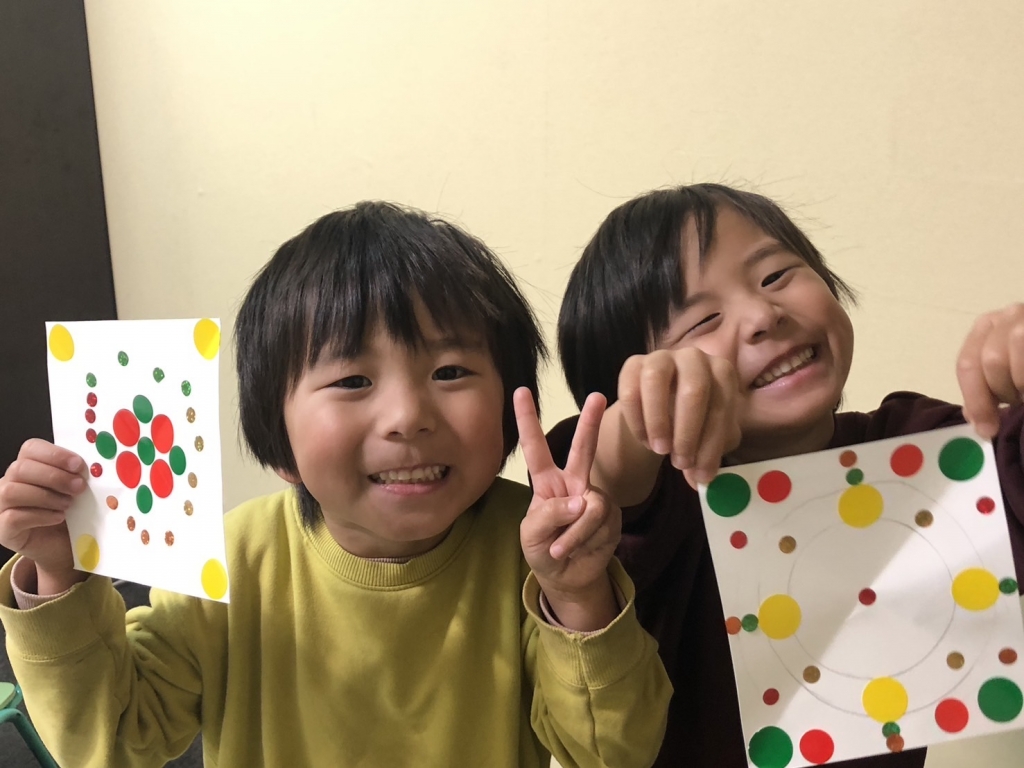 PreACCESSは、丸シールを使ってドット曼陀羅に挑戦しました。こちらも素敵です!