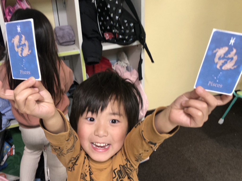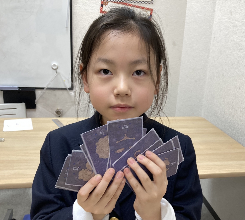 オリオン座、こいぬ座、冬の大三角形の星座など調べてみたり、星座カードをマッチするゲームも楽しみました。
