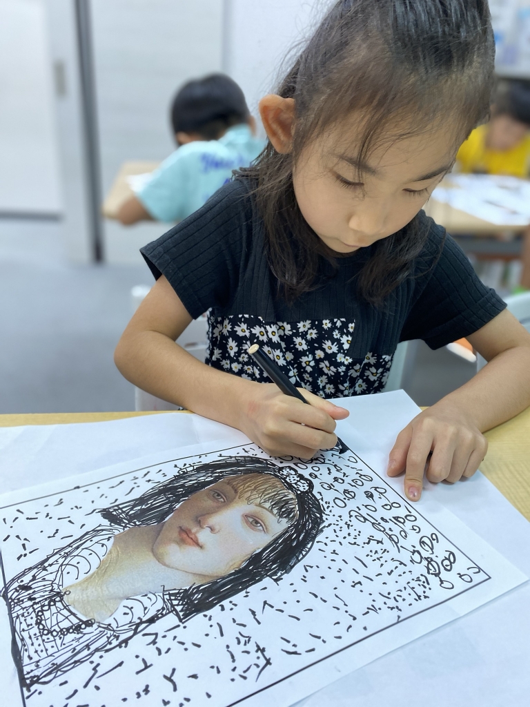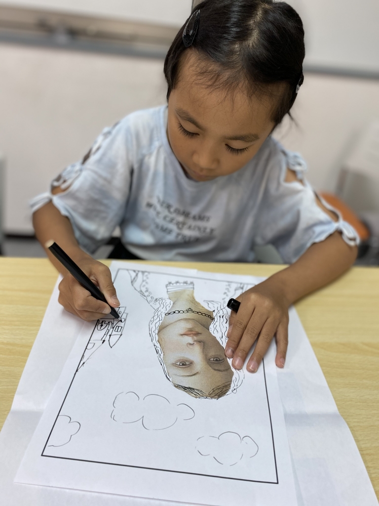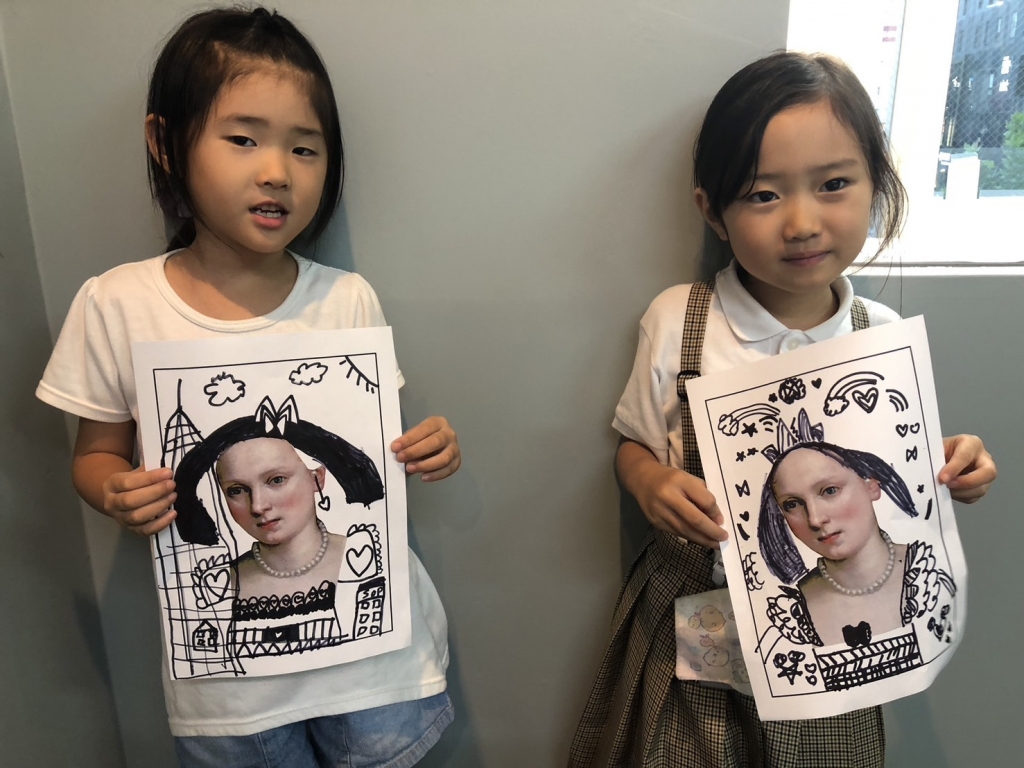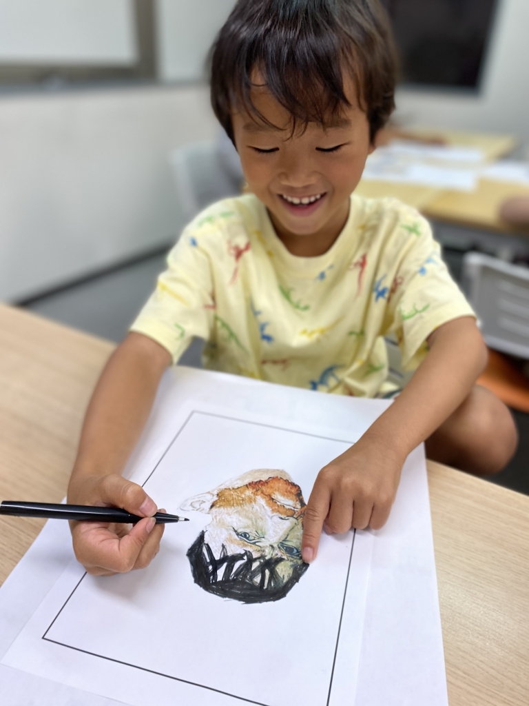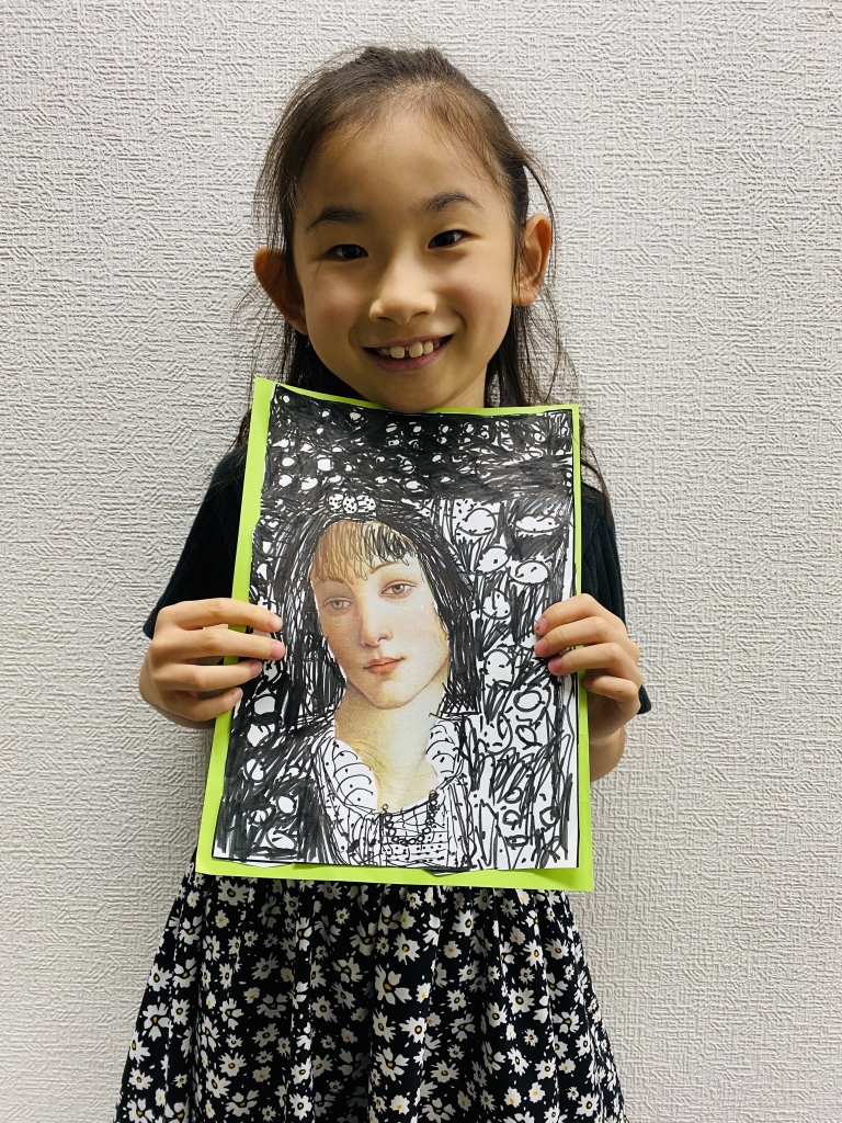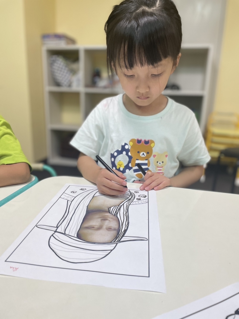 今月のSocial Studiesは、Famous Artistsと題して有名な画家や芸術家について学んでいます。今日のアートは、画家や芸術家の肖像画にちょっと手を加えて面白い作品を描きました。
