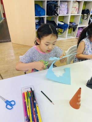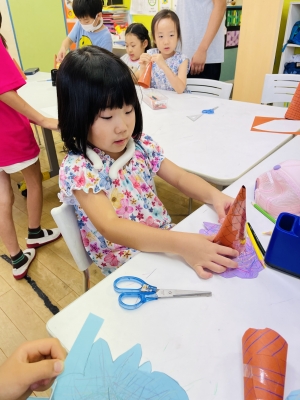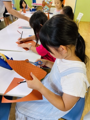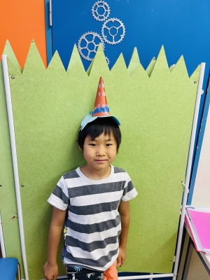 今日のアクティビティが”Ice Cream Party Hat”という事で、画用紙を使いアイスクリームのハットを作ってみました。