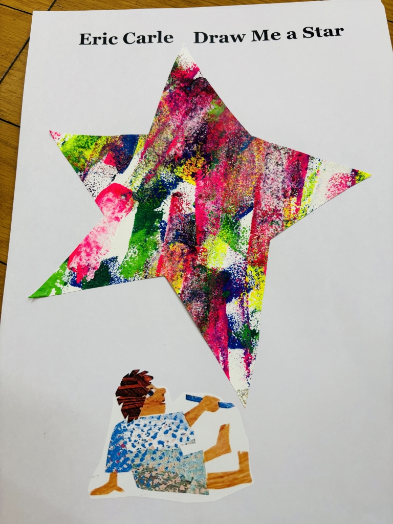 Then we watched “Draw me a Star” and did sponge painting to make a beautiful Star